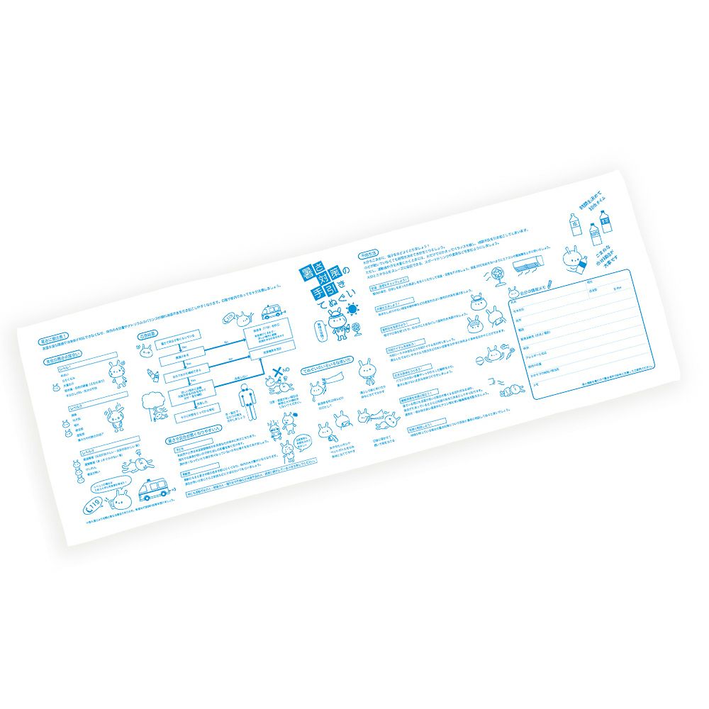 他の画像を見る 熱中症対策について役立つヒントをプリントした用途が広がる通常より長いサイズです。非常時・救急セットに 【メール便OK(4個まで)】防災グッズ暑さ対策の手引き手ぬぐい1000×350mm応急処置マニュアル 公式サイト販売価格 ¥ 217 税込 詳細を見る お気に入りに登録する