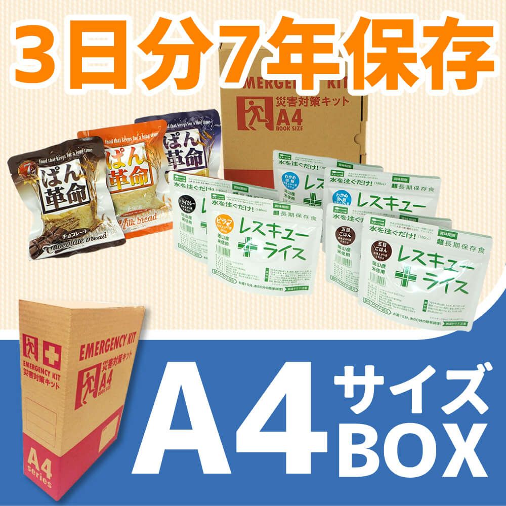 A4サイズBOX入りで備蓄に便利な非常食3日分!団体様用備蓄にもオススメ。手が汚れていても食べられる 長期保存食セット