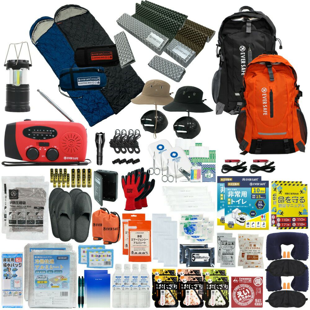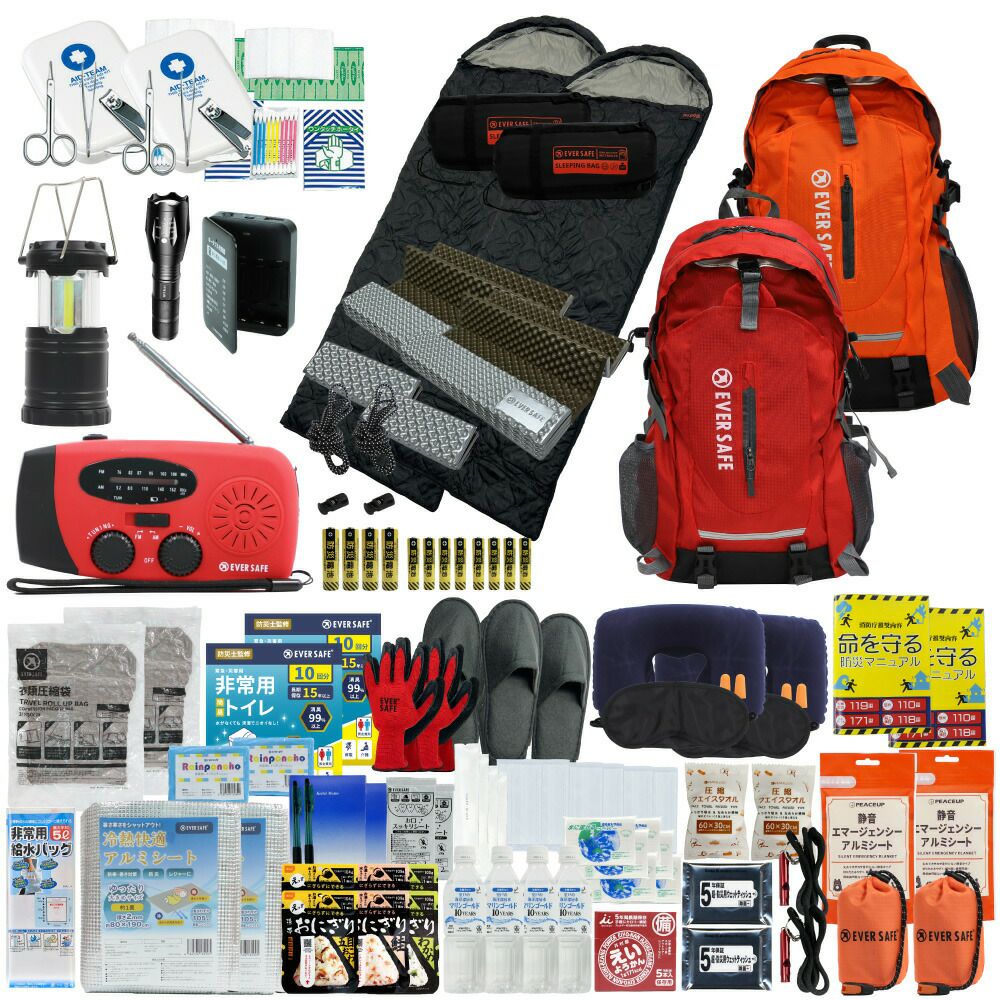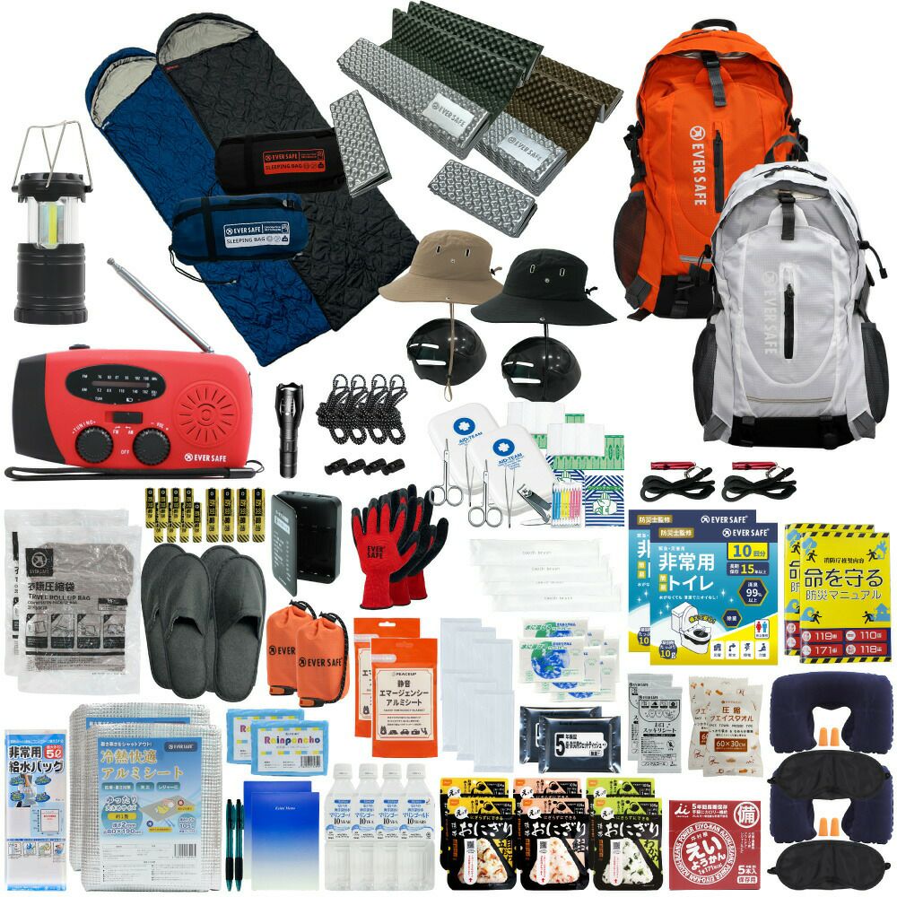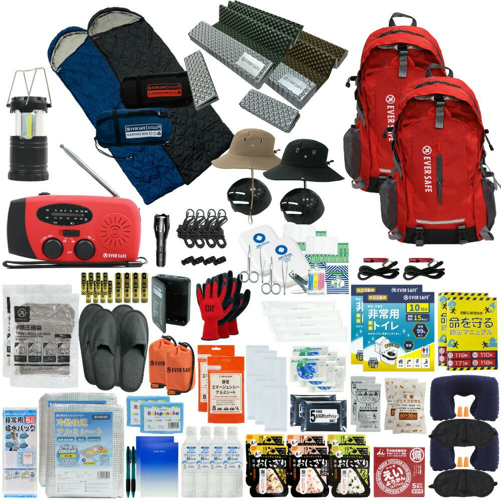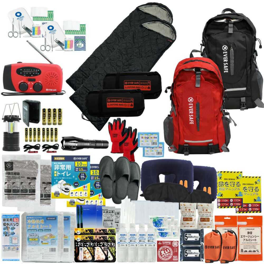 防災グッズ 防災セット 2人用 寝袋付き EVERSAFEリュック 防災士監修 救急セット 避難 地震 災害 防災食 防災寝具 防災ラジオ 長期保存水 非常用トイレ 懐中電灯 充電器 衛生用品 警戒レベル4 L4ESNB02