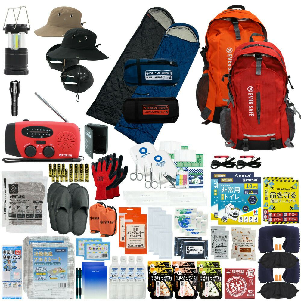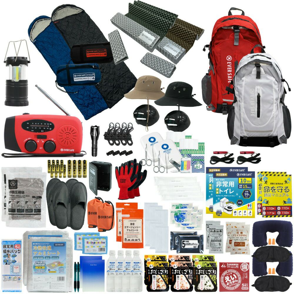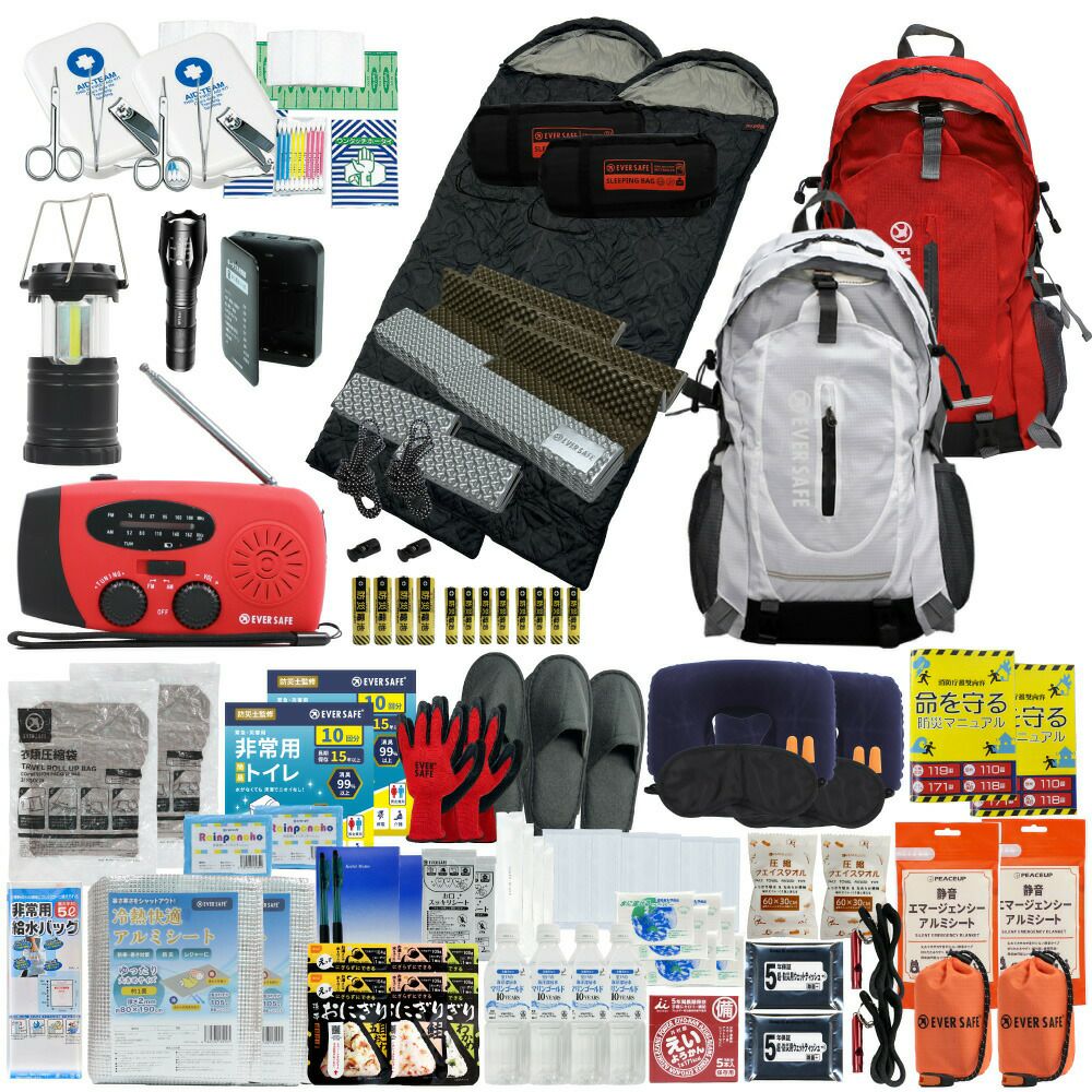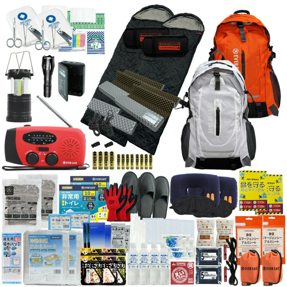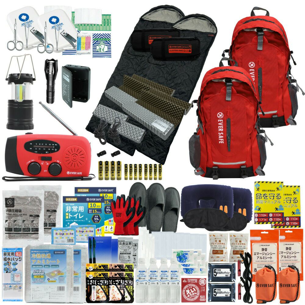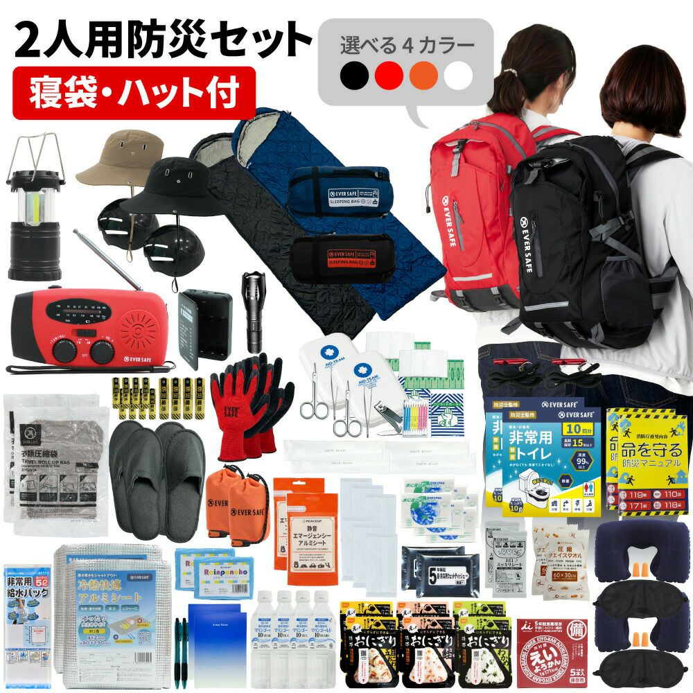 防災グッズ 防災セット 2人用 寝袋付き EVERSAFEリュック 防災士監修 救急セット 避難 地震 災害 防災食 防災寝具 防災ラジオ 長期保存水 非常用トイレ 懐中電灯 充電器 衛生用品 警戒レベル4 L4ESNB02