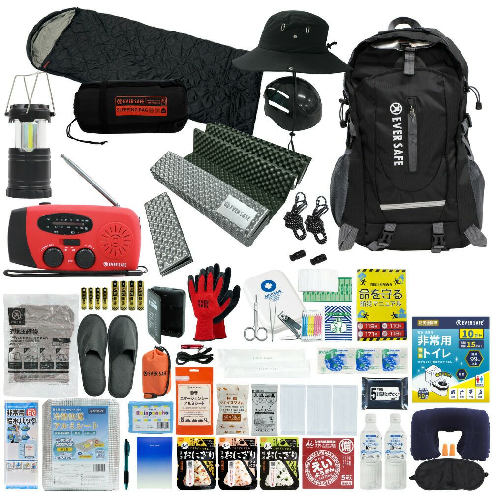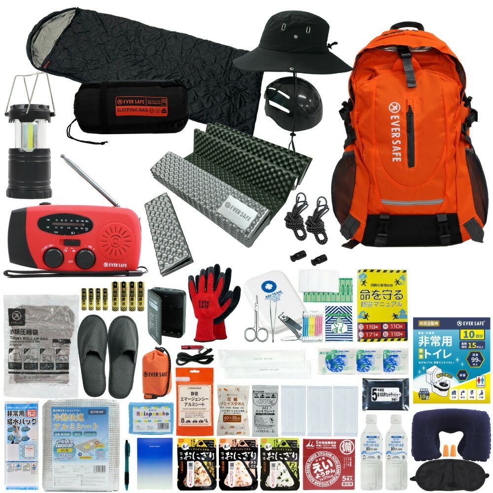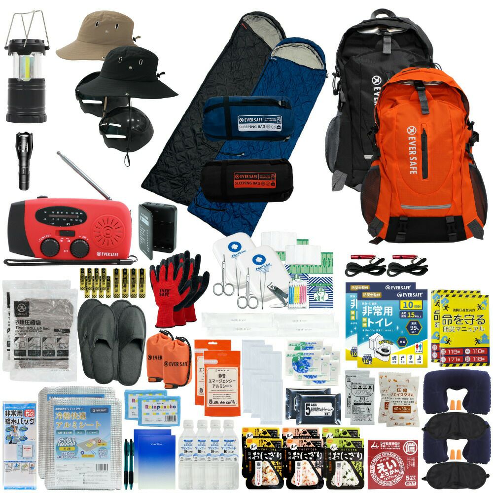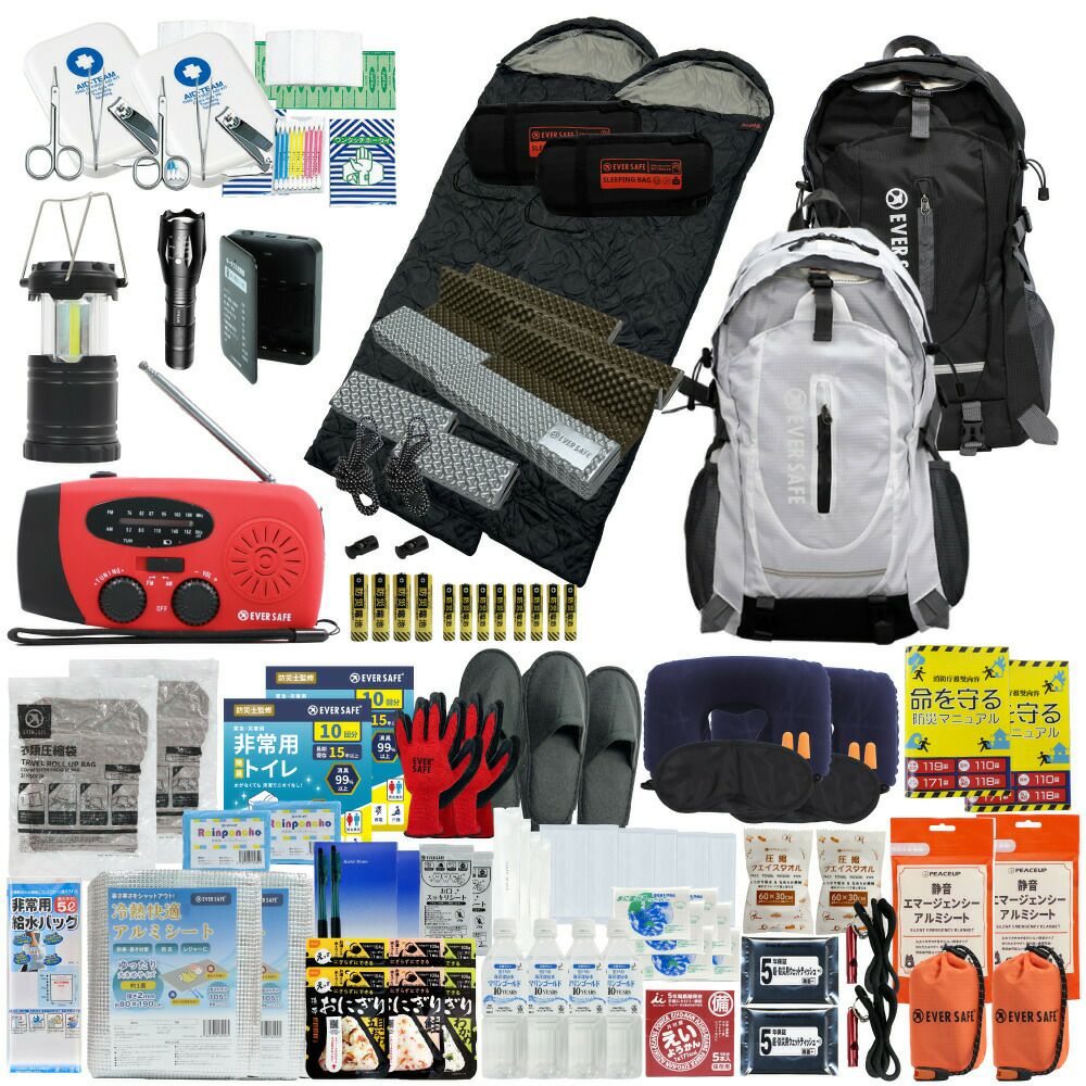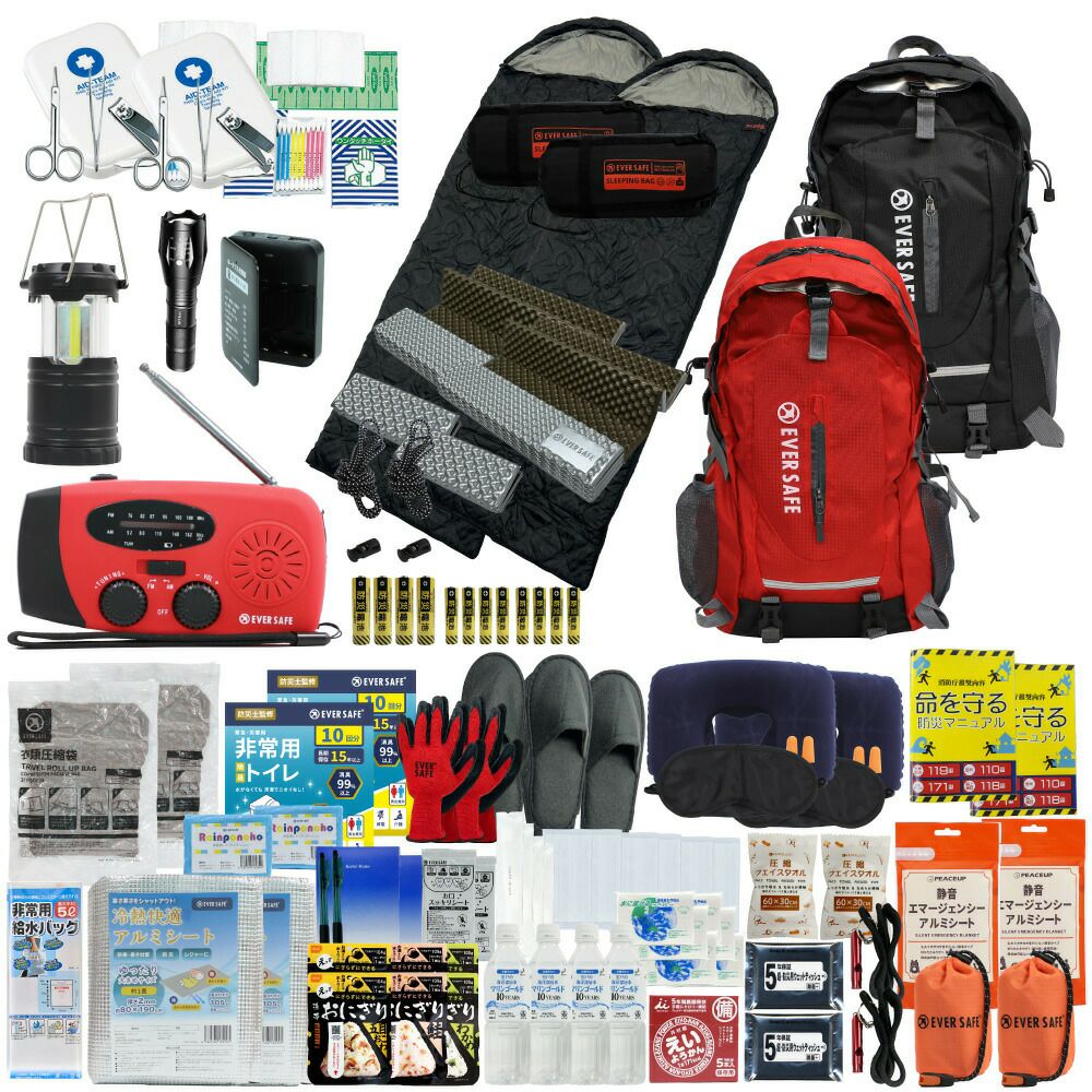防災グッズ 防災セット 2人用 寝袋付き EVERSAFEリュック 防災士監修 救急セット 避難 地震 災害 防災食 防災寝具 防災ラジオ 長期保存水 非常用トイレ 懐中電灯 充電器 衛生用品 警戒レベル4 L4ESNB02