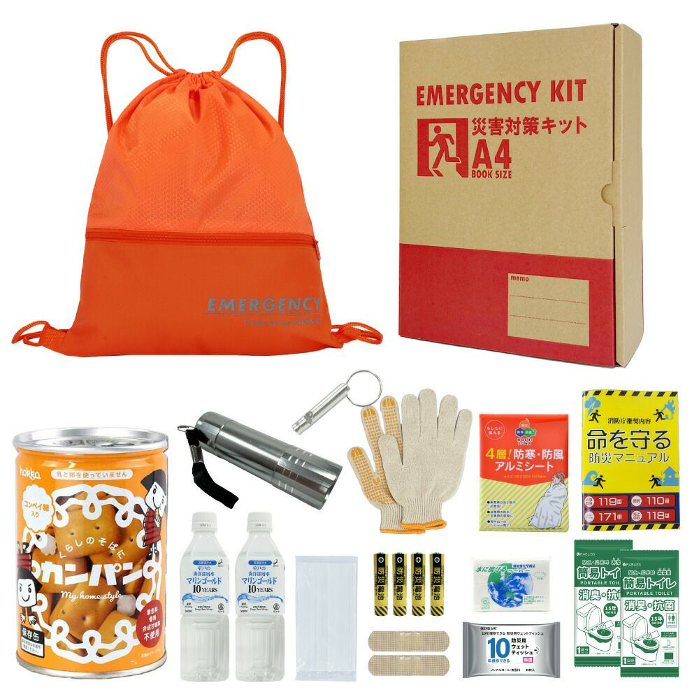 防災グッズ A4防災セット 基本内容ボックス2 非常用持ち出し袋 1人用 ナップサック コンパクト A4ボックス 非常食 カンパン 保存水 簡易トイレ オフィス防災 分散備蓄 災害対策 迅速避難 EVERSAFE A4k2