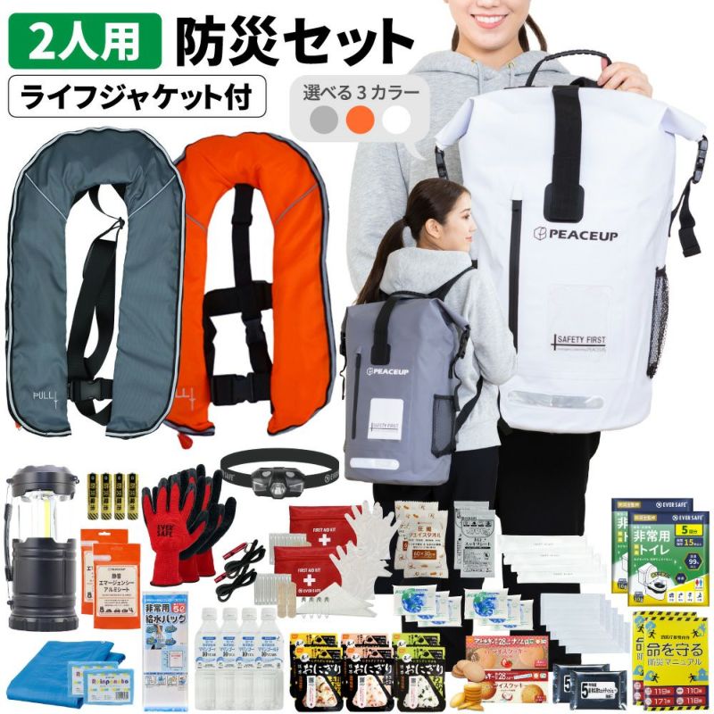 | 防災リュック | 2 | アウトドア・災害時に! 高い防水性、携帯性を備え、シンプルな作りで最大限の収納力を発揮。 ドライバッグはアウトドアや防災用のリュックに最適です。 水をためたり枕にしたりできるので非常時の使用方法にも適しています。 サイズ:(約)500 × 300mm マチ:Φ280mm 本体重量:(約)980g 容量:約35L 材質:500D tarpaulin 防水機能:IPX7 |