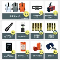 | ファーストエイドキット (Lサイズ) | 1 | 【防災士が厳選した安心の救急キット】 緊急時に必要なアイテムをコンパクトにまとめた救急セット。軽量で持ち運びに便利なので、防災用としてはもちろん、職場や旅行、アウトドアでも安心。どこでもすぐに取り出して使えるキット