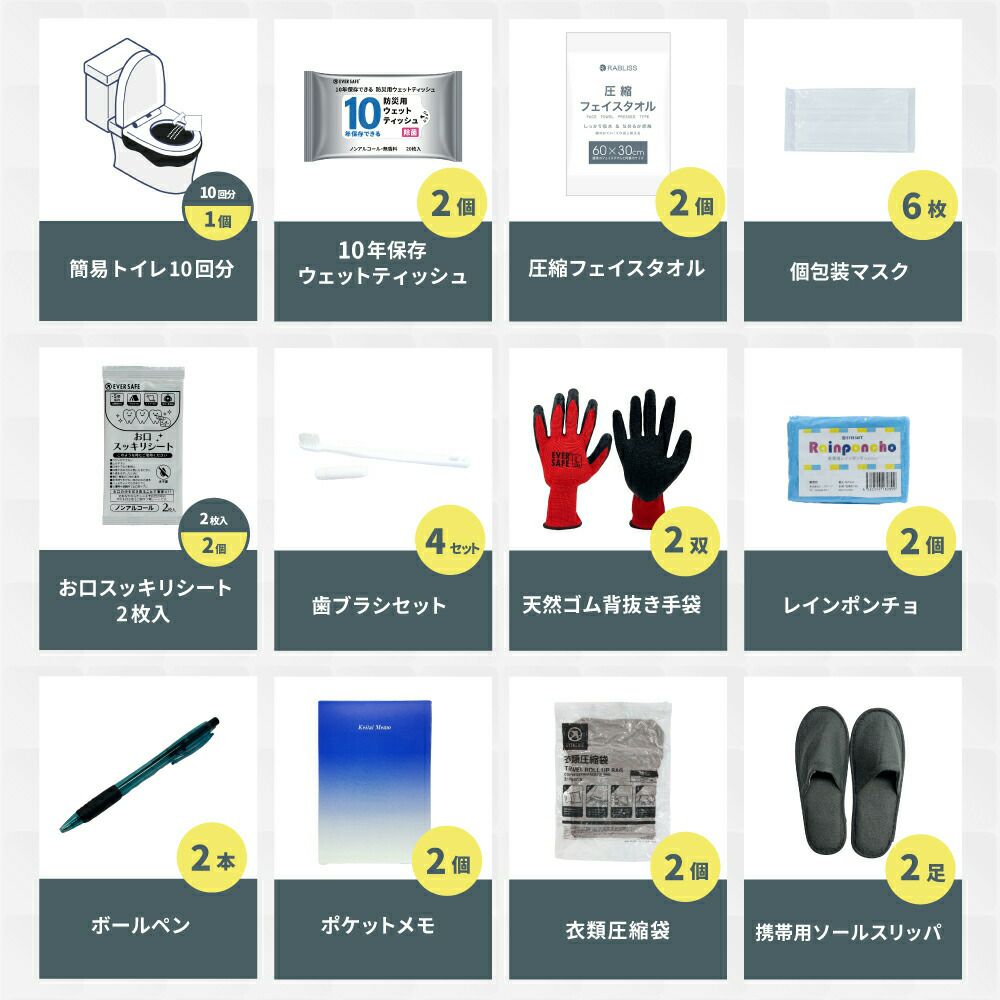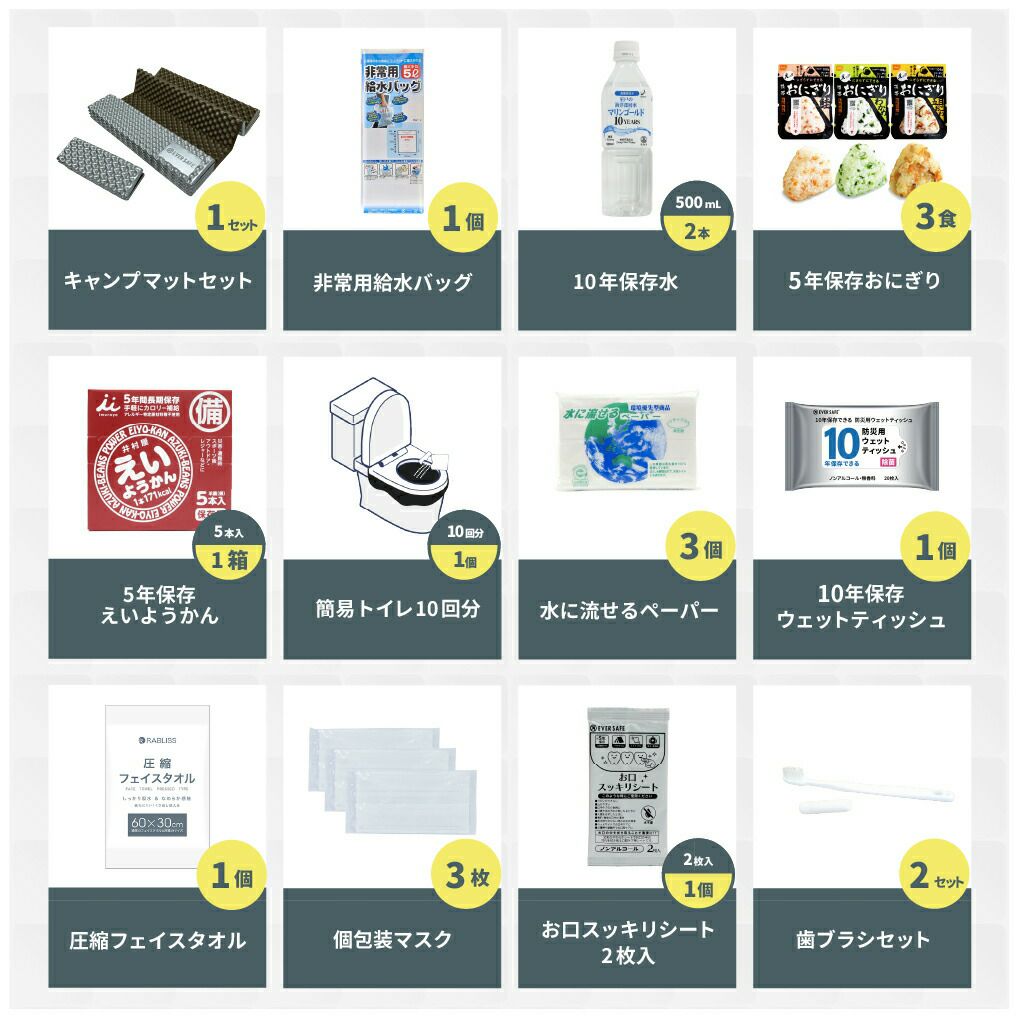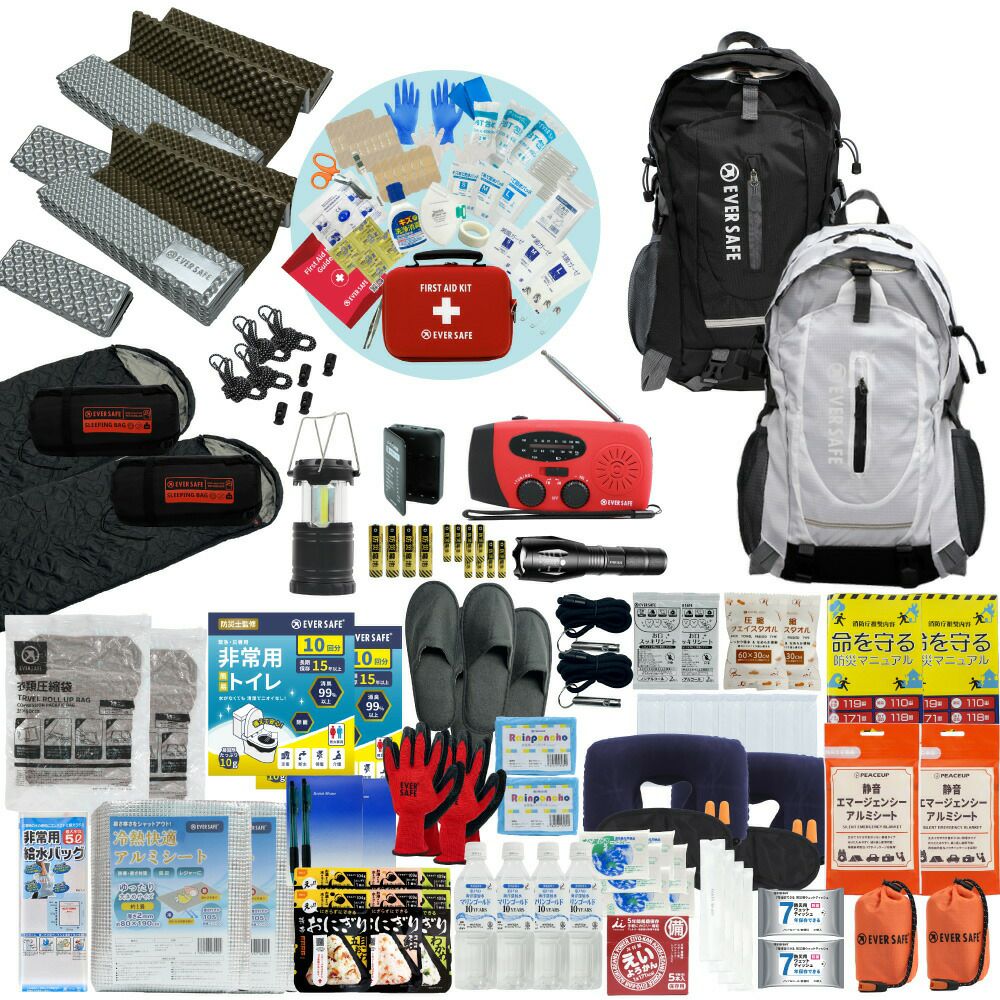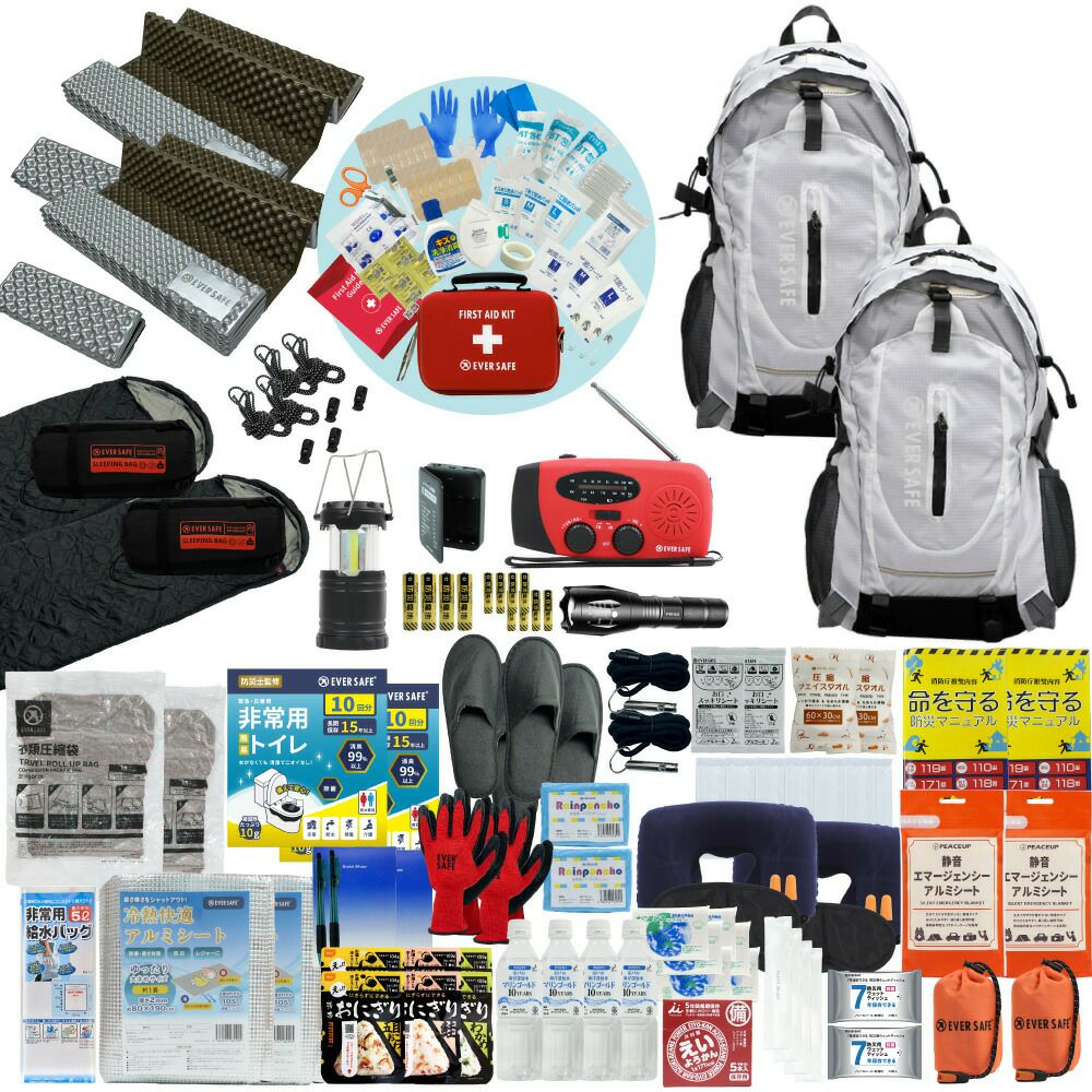 他の画像を見る 停電、断水、避難所生活などあらゆる場面を想定した万能タイプの防災セットに加え、ファーストエイドキットも付いたワンランク上の防災セット 防災グッズ 防災セット 2人用 EVERSAFEリュック 寝袋付き マット付き 防災士監修 ファーストエイドキット 避難グッズ 災害対策 地震対策 トイレ 非常食 ランタン ラジオ 長期保存水 警戒レベル5 EVERSAFE L5ESNBMT02 公式サイト販売価格 ¥ 37,904 税込 詳細を見る お気に入りに登録する