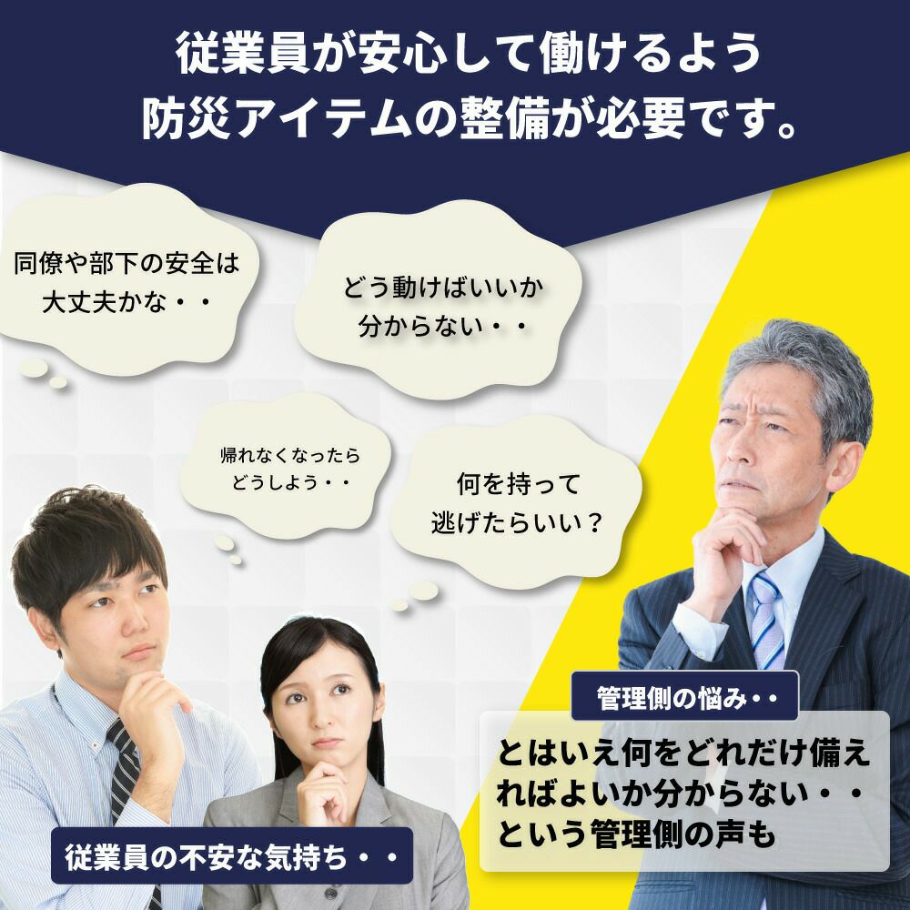 他の画像を見る さっと持って、すぐに避難。防災士監修、避難時に必要な15点を揃えた万が一のための防災セット。 防災グッズ 15点防災セットヘルメット付き 非常用持ち出し袋 避難 ヘルメット 長期保存 地震 災害 備蓄 職場防災 オフィス防災 安全管理 自治会 法人用 職場用 企業用 団体用 非常時 帰宅困難者 EVERSAFE 15HMT 公式サイト販売価格 ¥ 3,704 税込 詳細を見る お気に入りに登録する