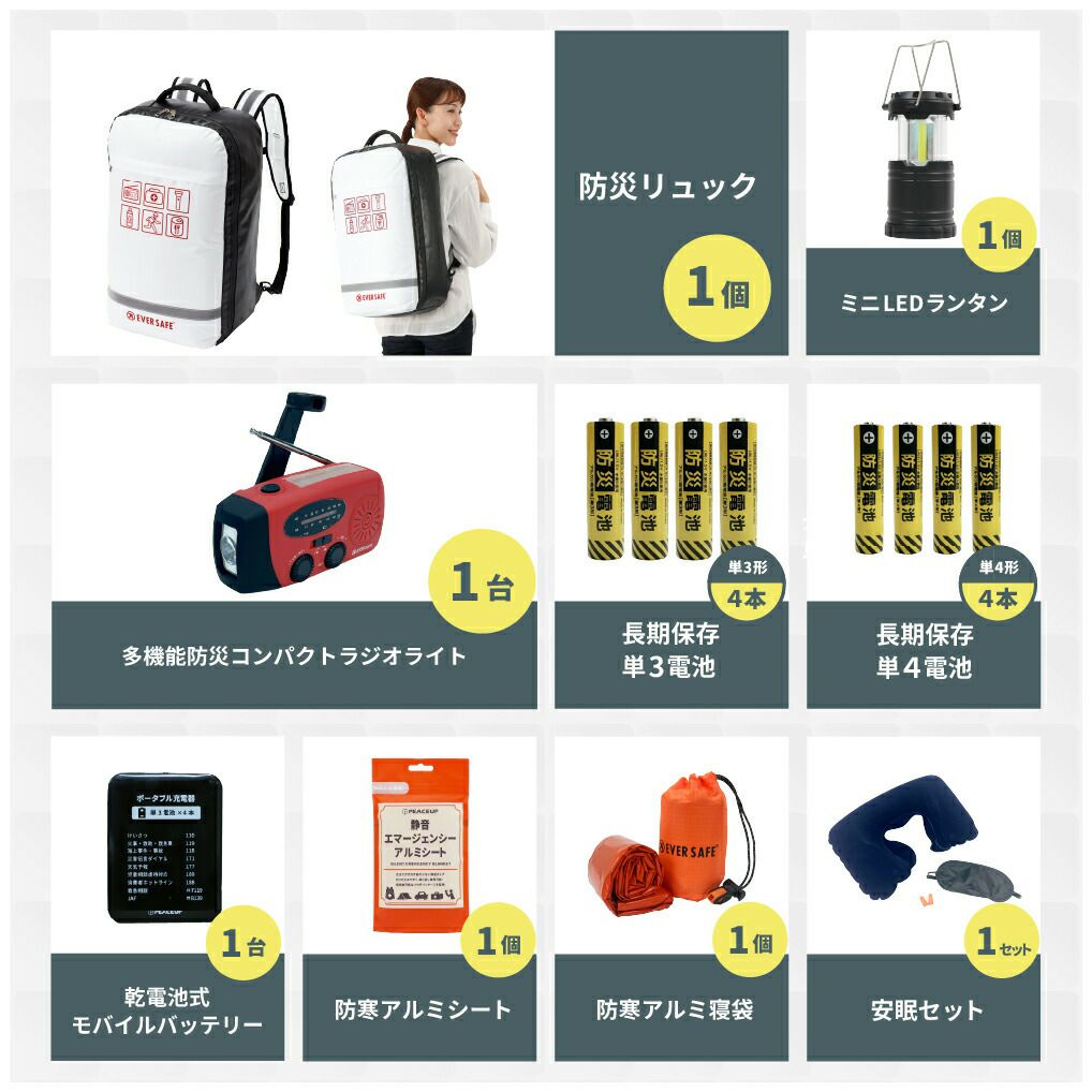 他の画像を見る 停電、断水、避難所生活などあらゆる場面を想定した万能タイプの防災セットに加え、ファーストエイドキットも付いたワンランク上の防災セット 防災グッズ 防災セット 1人用 EVERSAFEリュック 防災士監修 ファーストエイドキット 避難グッズ 災害対策 地震対策 トイレ 非常食 ランタン ラジオ 長期保存水 懐中電灯 充電器 防災 警戒レベル5 EVERSAFE L5ES01 公式サイト販売価格 ¥ 18,980 税込 詳細を見る お気に入りに登録する