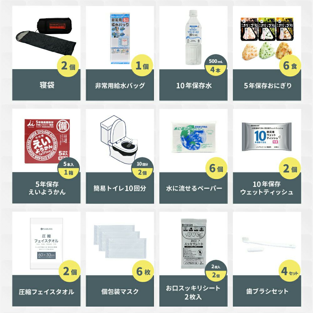 他の画像を見る 停電、断水、避難所生活などあらゆる場面を想定した万能タイプの防災セットに加え、ファーストエイドキットも付いたワンランク上の防災セット 防災グッズ 防災セット 2人用 ドライバッグ 防水リュック ヘッドライト ライフジャケット 防災士監修 ファーストエイドキット トイレ 非常食 避難グッズ 水害対策 ランタン 懐中電灯 警戒レベル5 EVERSAFE L5DRLF02 公式サイト特別価格 ¥ 40,659 税込 詳細を見る お気に入りに登録する