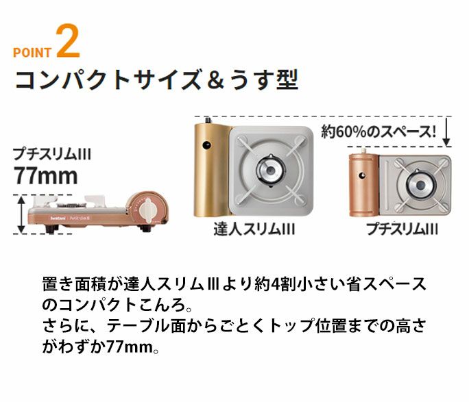 他の画像を見る コンパクトサイズ&うす型!置き面積が約4割小さい省スペースのコンパクトこんろ コンパクト カセットコンロ カセットフー プチスリム3 イワタニ CB-JRC-PS3 公式サイト販売価格 ¥ 7,910 税込 詳細を見る お気に入りに登録する