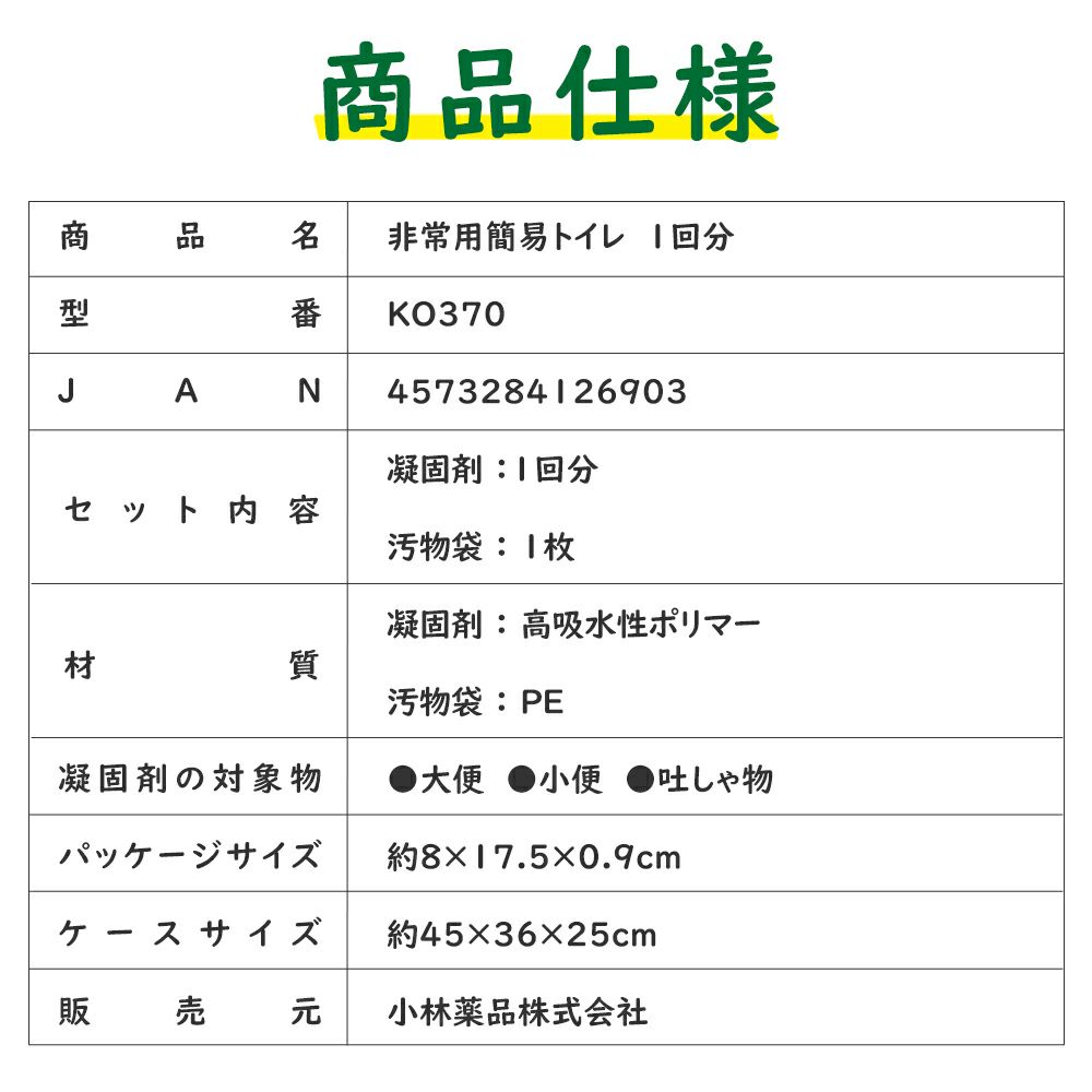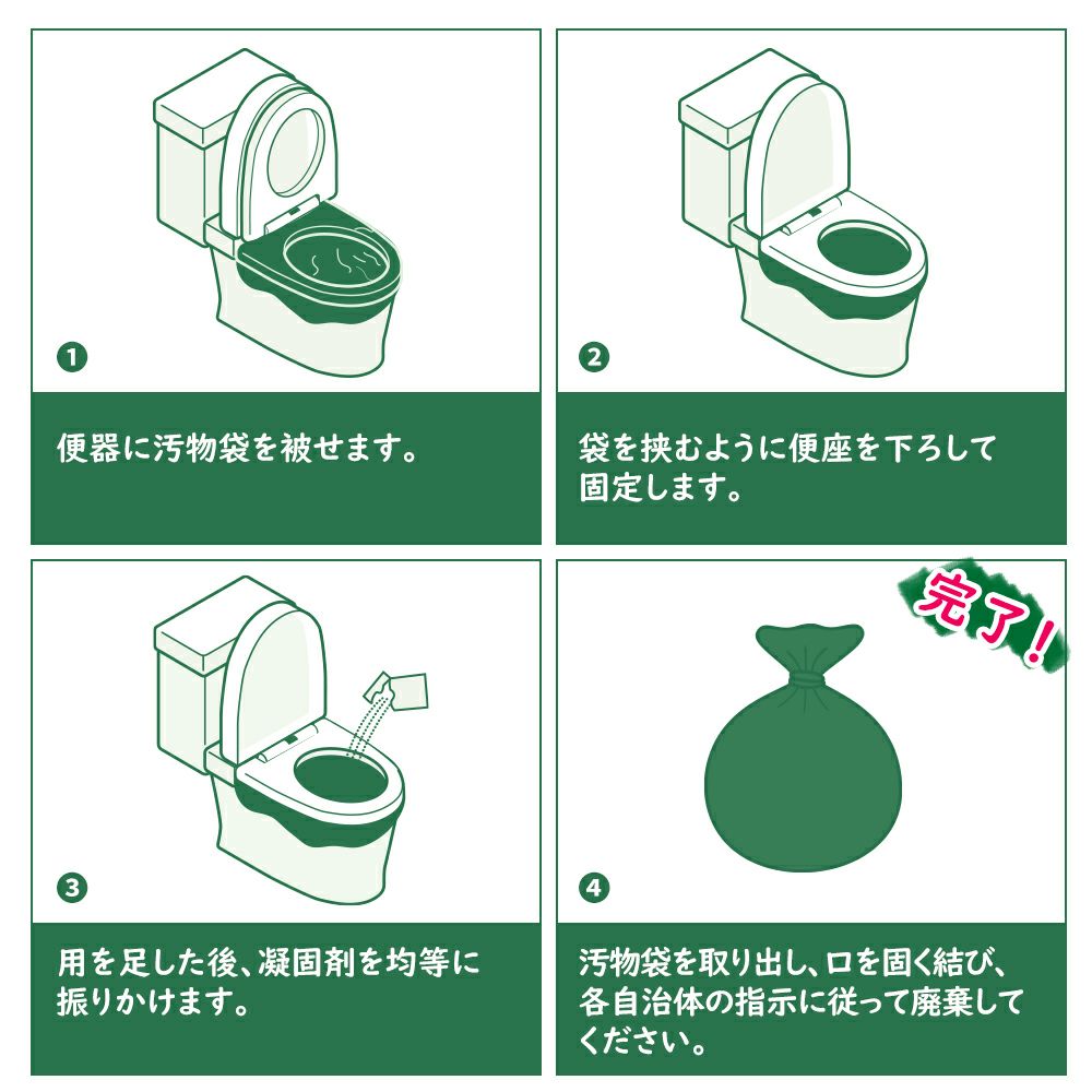 他の画像を見る 凝固剤10g使用 コンパクト 大容量 断水時 アウトドア 介護 災害用 女性用 男性用 備蓄 簡易トイレ 非常用トイレ 1回分 KO370 15年以上保存 汚物袋付き 仮設トイレ 非常時 災害時 防災グッズ メール便20個まで 公式サイト販売価格 ¥ 112 税込 詳細を見る お気に入りに登録する