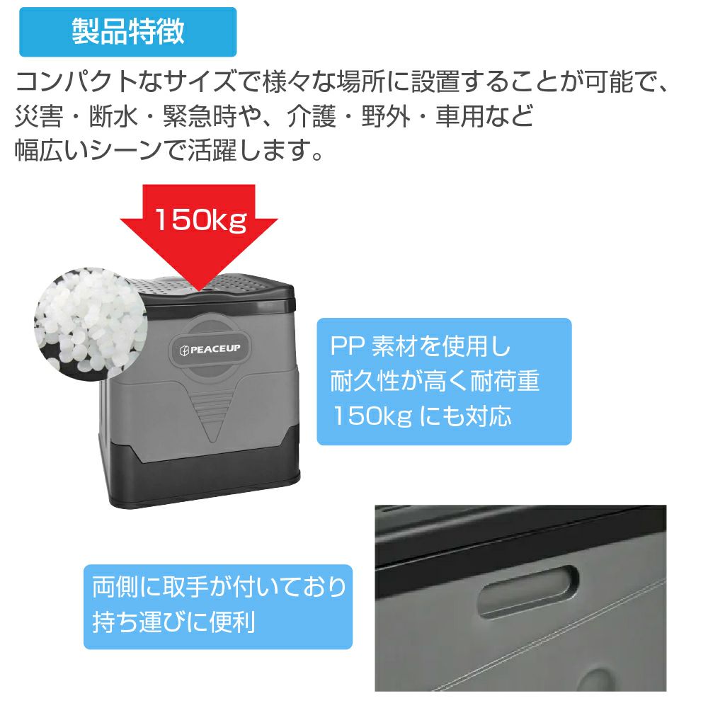 他の画像を見る 組立・解体簡単!道具不要!! ふだんはコンパクトに収納。 緊急時は、組み立てたら45Lのゴミ袋を被せるだけ! 四万十ヒノキ使用の日本製 防災トイレ 【収納型ワイド】 TS-8 (5台セット) 84 はちよん 簡易トイレ 避難用トイレ 折りたたみ 日本製 防災グッズ 公式サイト販売価格 ¥ 23,512 税込 詳細を見る お気に入りに登録する