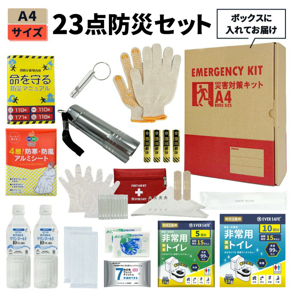 他の画像を見る 災害時に役立つ防災グッズをA4サイズボックスに詰め合わせたセット ファイル棚やデスクの引き出しに収納可能 A4防災セット 23点 1人用 防災セット A4ボックス コンパクト 防災グッズ 保存水 簡易トイレ アルミシート ファーストエイド オフィス防災 分散備蓄 災害対策 迅速避難 EVERSAFE A4TT 公式サイト販売価格 ¥ 3,657 税込 詳細を見る お気に入りに登録する
