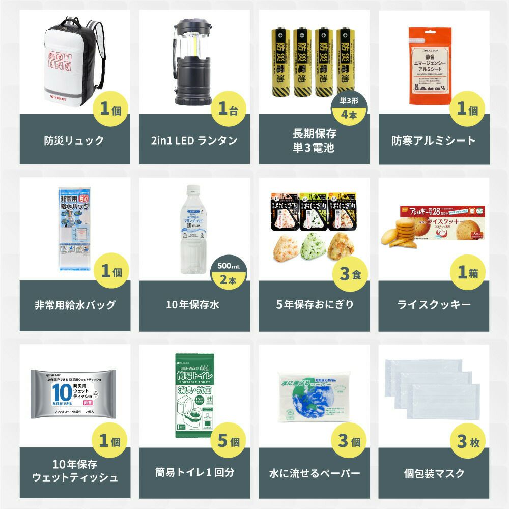 他の画像を見る 水に強い防水リュック 水害に備える防災セット 選べる3カラー 防災士監修 防災セット 2人用 ドライバッグ 防水リュック ヘッドライト 水害対策 防災リュック 非常食 保存水 防災ラジオ 簡易トイレ 懐中電灯 衛生用品 警戒レベル4 水難 避難 アウトドア L4DR02 公式サイト特別価格 ¥ 28,309 税込 詳細を見る お気に入りに登録する
