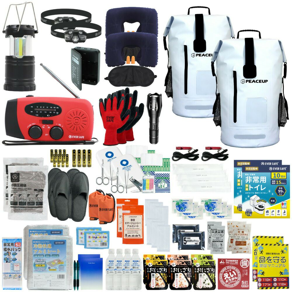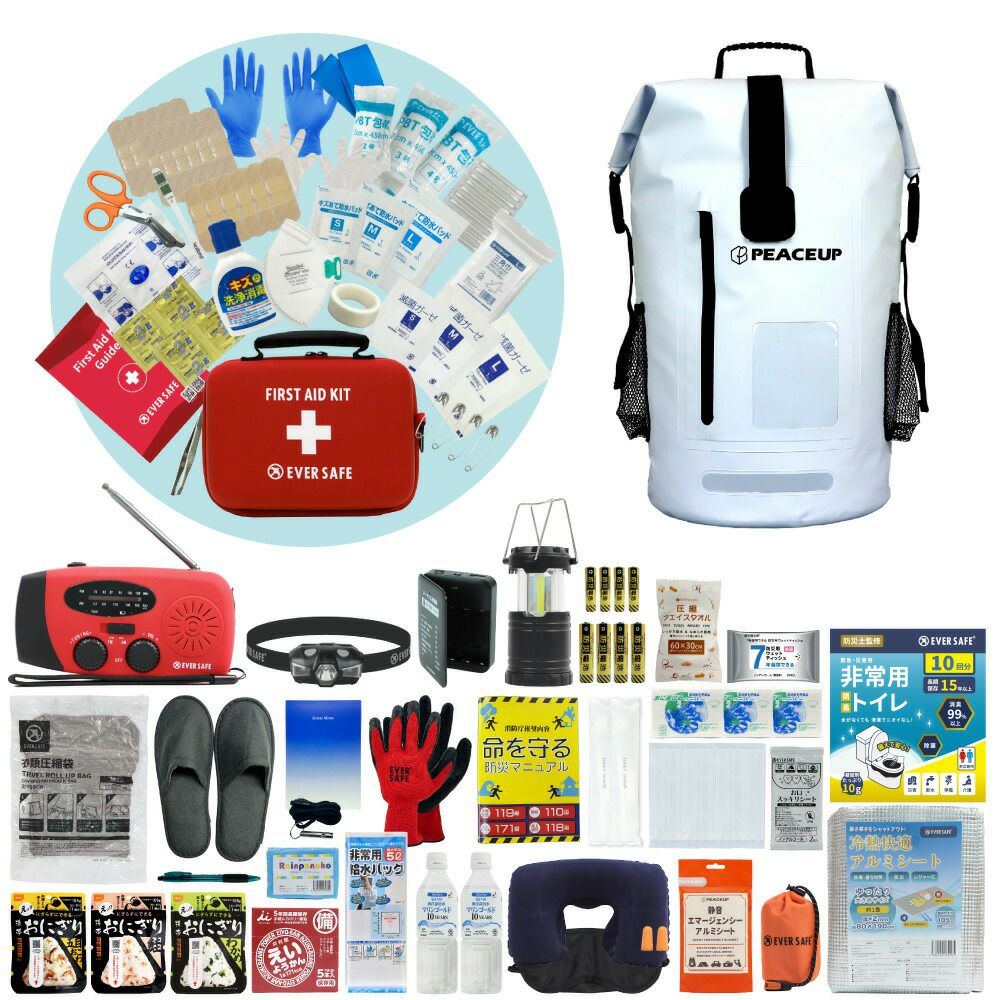 他の画像を見る 停電、断水、避難所生活などあらゆる場面を想定した万能タイプの防災セットに加え、ファーストエイドキットも付いたワンランク上の防災セット 防災グッズ 防災セット 2人用 ドライバッグ 防水リュック ヘッドライト付き 防災士監修 ファーストエイドキット トイレ 非常食 避難グッズ 水害対策 ランタン ラジオ 長期保存水 懐中電灯 警戒レベル5 EVERSAFE L5DR02 公式サイト販売価格 ¥ 31,160 税込 詳細を見る お気に入りに登録する
