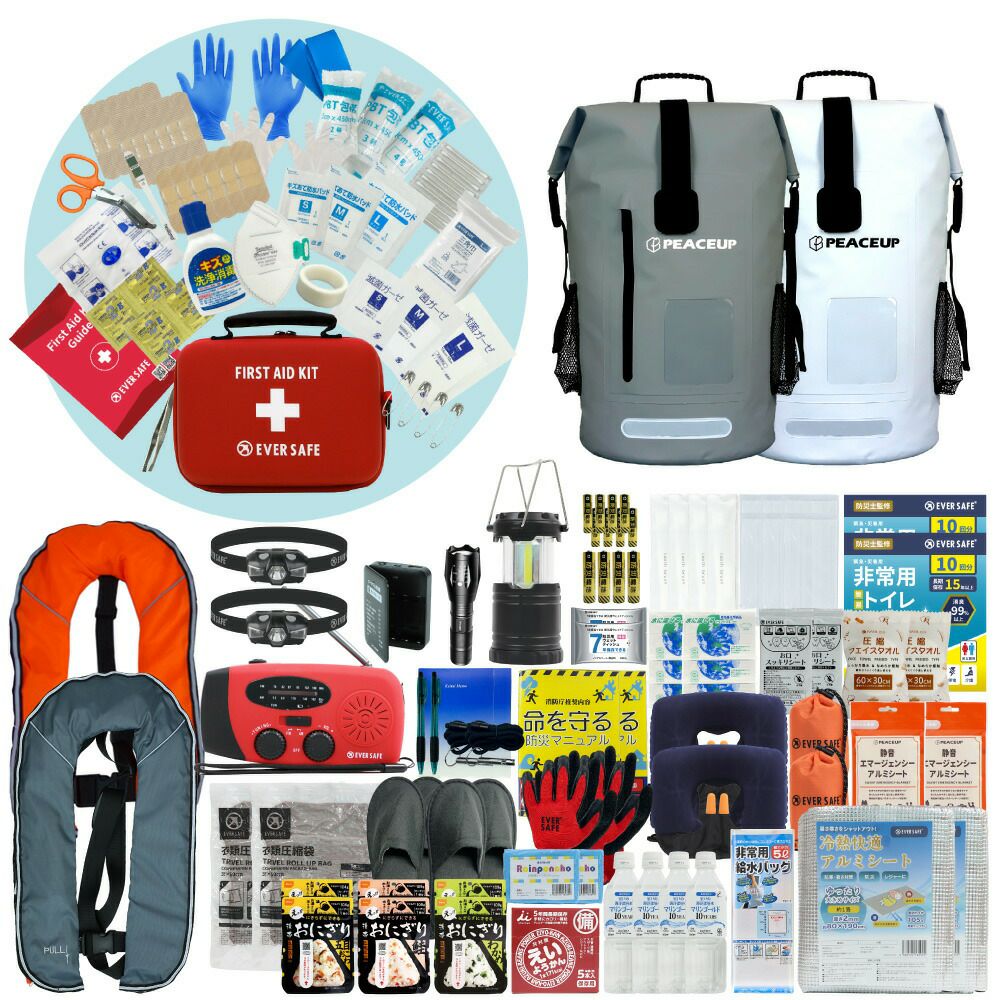 他の画像を見る 停電、断水、避難所生活などあらゆる場面を想定した万能タイプの防災セットに加え、ファーストエイドキットも付いたワンランク上の防災セット 防災グッズ 防災セット 1人用 ドライバッグ 防水リュック ヘッドライト ライフジャケット 防災士監修 ファーストエイドキット トイレ 非常食 避難グッズ 水害対策 ランタン 懐中電灯 警戒レベル5 EVERSAFE L5DRLF01 公式サイト販売価格 ¥ 25,459 税込 詳細を見る お気に入りに登録する