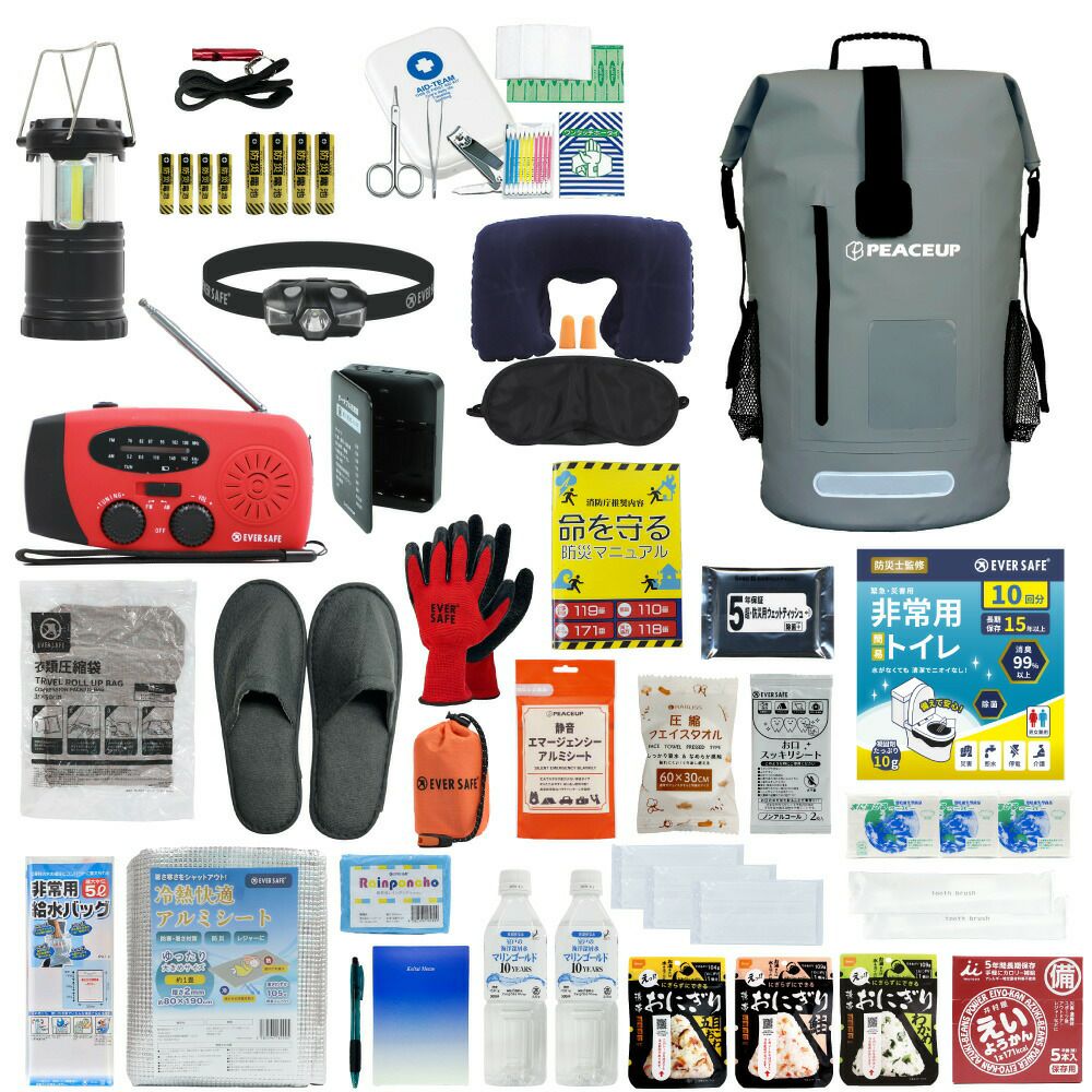 他の画像を見る 停電、断水、避難所生活などあらゆる場面を想定した万能タイプの防災セットに加え、ファーストエイドキットも付いたワンランク上の防災セット 防災グッズ 防災セット 2人用 ドライバッグ 防水リュック ヘッドライト ライフジャケット 防災士監修 ファーストエイドキット トイレ 非常食 避難グッズ 水害対策 ランタン 懐中電灯 警戒レベル5 EVERSAFE L5DRLF02 公式サイト販売価格 ¥ 40,659 税込 詳細を見る お気に入りに登録する