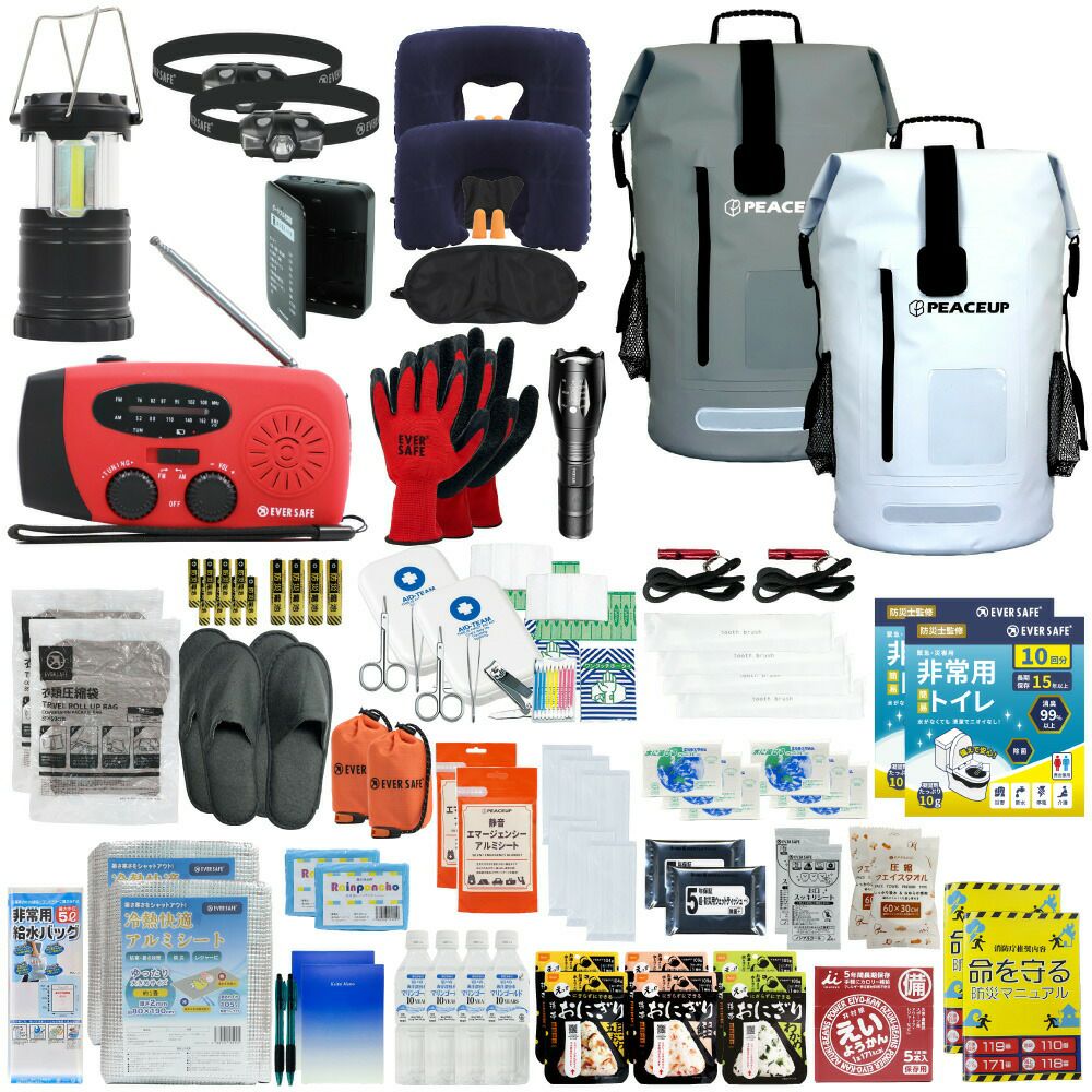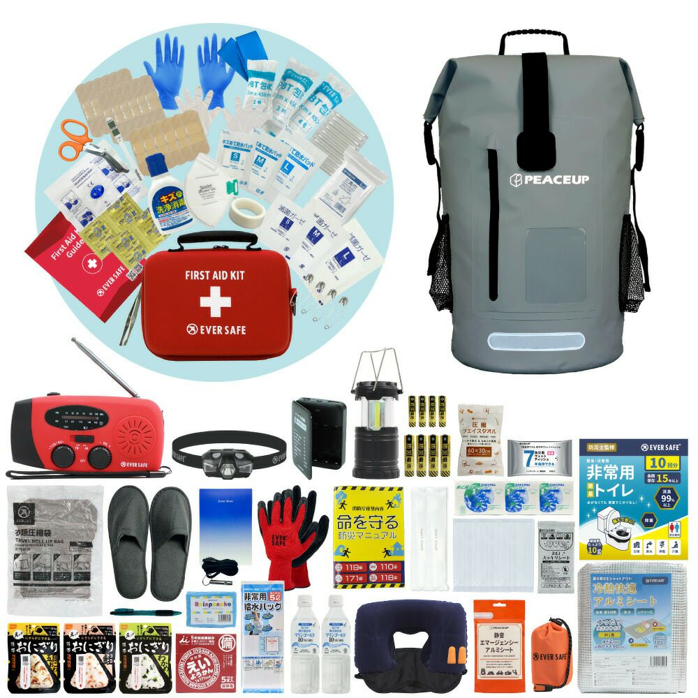 他の画像を見る 停電、断水、避難所生活などあらゆる場面を想定した万能タイプの防災セットに加え、ファーストエイドキットも付いたワンランク上の防災セット 防災グッズ 防災セット 2人用 ドライバッグ 防水リュック ヘッドライト付き 防災士監修 ファーストエイドキット トイレ 非常食 避難グッズ 水害対策 ランタン ラジオ 長期保存水 懐中電灯 警戒レベル5 EVERSAFE L5DR02 公式サイト販売価格 ¥ 31,160 税込 詳細を見る お気に入りに登録する