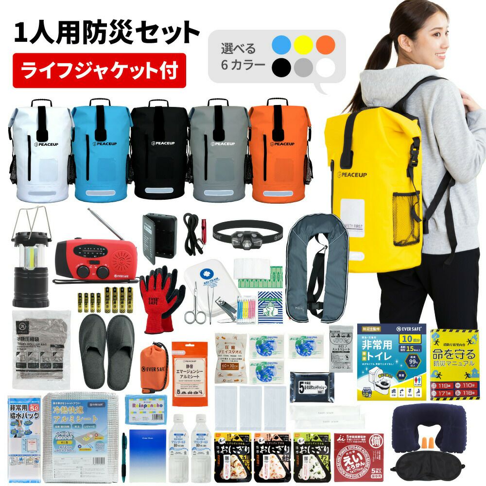 他の画像を見る 水に強い防水リュック ライフジャケット付き 水害に備える防災セット 選べる6カラー 防災士監修 防災セット 1人用 ドライバッグ 防水リュック 手動膨張式 ライフジャケット ヘッドライト 水害対策 防災リュック 非常食 保存水 防災ラジオ 簡易トイレ 懐中電灯 警戒レベル4 水難 アウトドア L4DRLF01 公式サイト販売価格 ¥ 22,610 税込 詳細を見る お気に入りに登録する