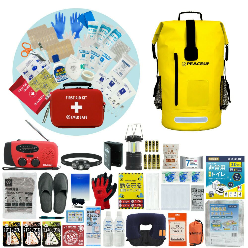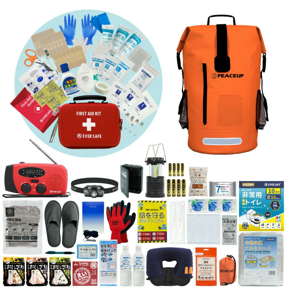他の画像を見る 停電、断水、避難所生活などあらゆる場面を想定した万能タイプの防災セットに加え、ファーストエイドキットも付いたワンランク上の防災セット 防災グッズ 防災セット 1人用 ドライバッグ 防水リュック ヘッドライト ライフジャケット 防災士監修 ファーストエイドキット トイレ 非常食 避難グッズ 水害対策 ランタン 懐中電灯 警戒レベル5 EVERSAFE L5DRLF01 公式サイト販売価格 ¥ 25,459 税込 詳細を見る お気に入りに登録する