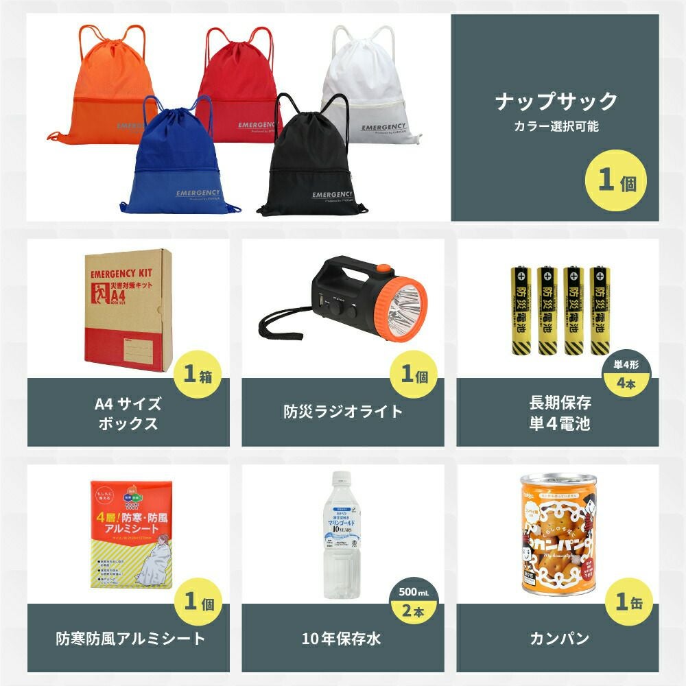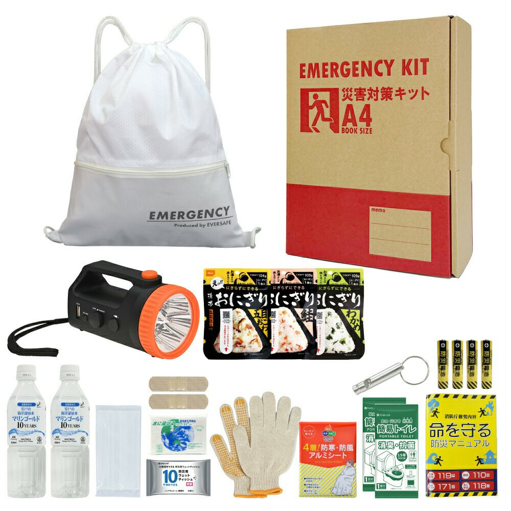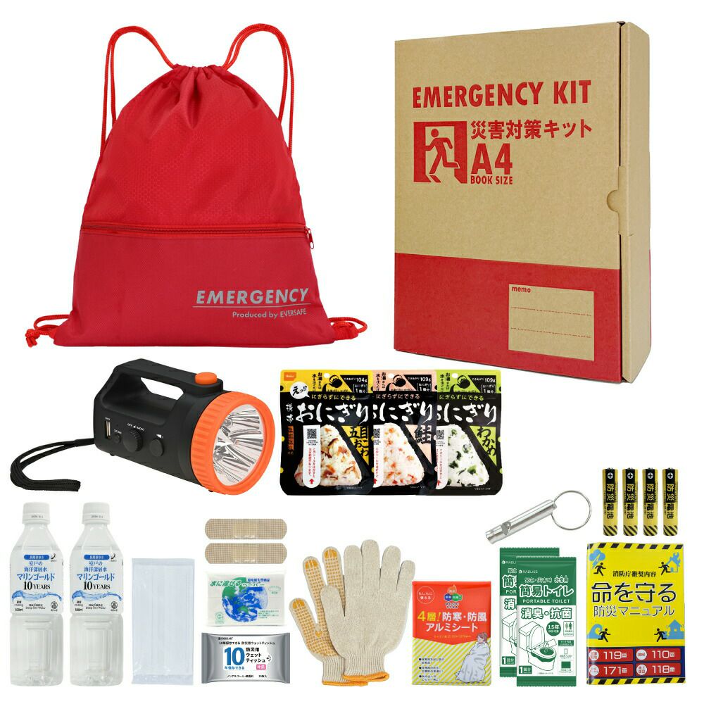 他の画像を見る 災害時に役立つ一人用の防災グッズをA4サイズボックスに詰め合わせたセット ファイル棚やデスクの引き出しに収納可能 非常用持ち出し袋 A4 防災セット 基本内容ボックス1プラス 防災グッズ 1人用 非常食 おにぎり 保存水 簡易トイレ ラジオ ライト オフィス 職場 A4K1P EVERSAFE 公式サイト特別価格 ¥ 3,781 税込 詳細を見る お気に入りに登録する