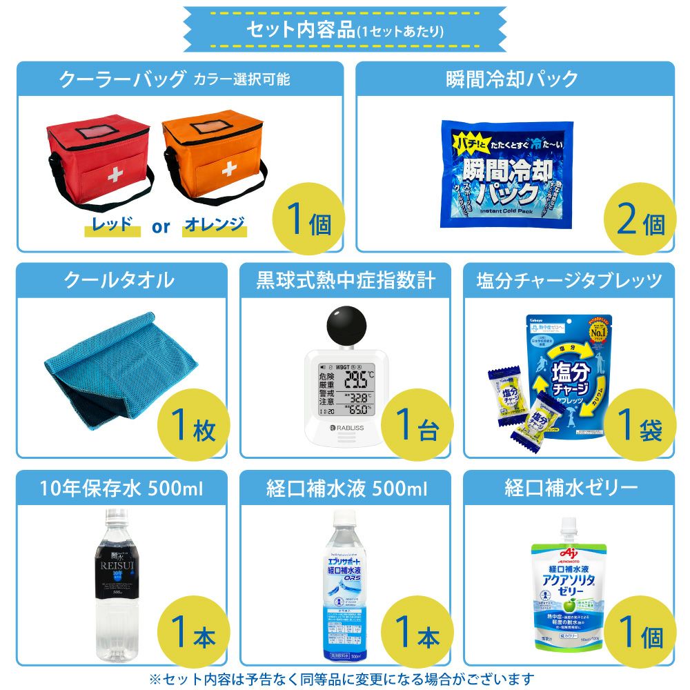 他の画像を見る 暑さ対策 熱中対策セット 熱中症予防キット 夏場の現場作業 工場 スポーツ アウトドア 熱中症対策セット 塩分補給 車載用にも 熱中症対策用品 熱中症対策キット 9点 10セット 暑さ対策 クーラーバッグ 瞬間冷却剤 ゼリー ドリンク 塩分チャージ タブレット 工事現場 ATB010 PEACEUP 公式サイト特別価格 ¥ 26,125 税込 詳細を見る お気に入りに登録する