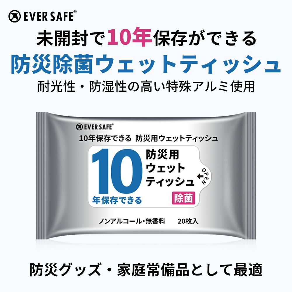 他の画像を見る 耐光性・防湿性の高い特殊アルミを採用、未開封で10年保存可能 衛生用品 10年保存できる防災用ウェットティッシュ 10個 長期保存 ノンアルコール 無香料 防災グッズ 災害 水害 ES10YWT EVERSAFE メール便1セットまでOK 公式サイト特別価格 ¥ 1,186 税込 詳細を見る お気に入りに登録する