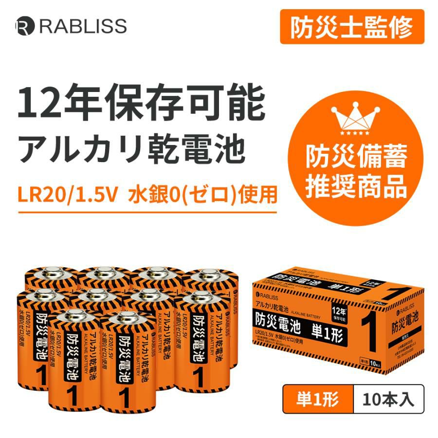 他の画像を見る 防災備蓄推奨商品 12年保存可能 水銀0(ゼロ) 停電 緊急時の強い味方 アルカリ乾電池 防災電池 単1形 100本 (10箱/ケース) 単1電池 電池 12年保存 台風対策 地震対策 充電 懐中電灯 ラジオ ライト ランタン 防災グッズ KO407 RABLISS 公式サイト特別価格 ¥ 20,691 税込 詳細を見る お気に入りに登録する