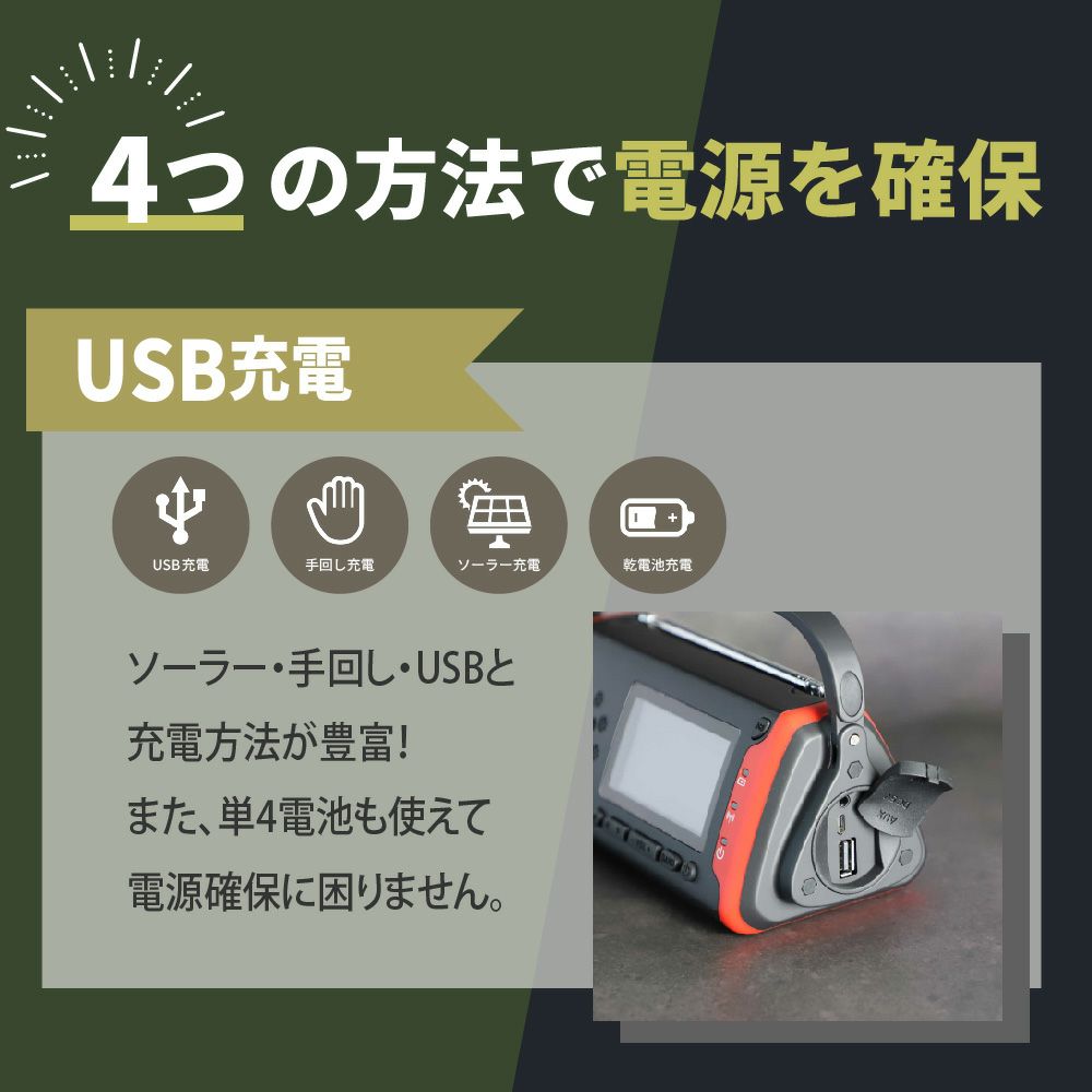 他の画像を見る テーブルライトにもなる!iPhone Android 充電対応 手回し発電 充電 ソーラー充電 乾電池式 USB充電 多機能防災ラジオライト【10年保存電池付き】 タイプ別USBコネクタ付 電池使用可 LEDライト ソーラー充電 AM/FM ワイドFM サイレン 新型エマージェンシーラジオ BR001 3カラー 単品 手回し 充電 ダイナモ 非常用 停電 公式サイト販売価格 ¥ 4,730 税込 詳細を見る お気に入りに登録する