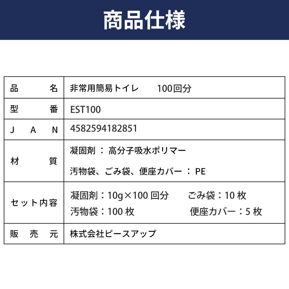 他の画像を見る 凝固剤10g使用 コンパクト 大容量 断水時 アウトドア 介護 災害用 女性用 男性用 備蓄 簡易トイレ 非常用トイレ 100回分 EST100 15年以上保存 汚物袋付き 仮設トイレ 非常時 災害時 防災グッズ 公式サイト販売価格 ¥ 5,205 税込 詳細を見る お気に入りに登録する