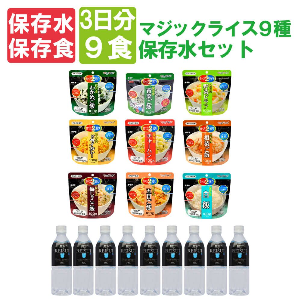 他の画像を見る 【全9種】白米・わかめご飯・青菜ご飯・梅じゃこご飯・五目ご飯・ドライカレー・野菜ピラフ・根菜ご飯・チャーハン 非常食セットサタケのマジックライス9食分3日分9種類コンプリートセット5年保存 公式サイト販売価格 ¥ 3,276 税込 詳細を見る お気に入りに登録する