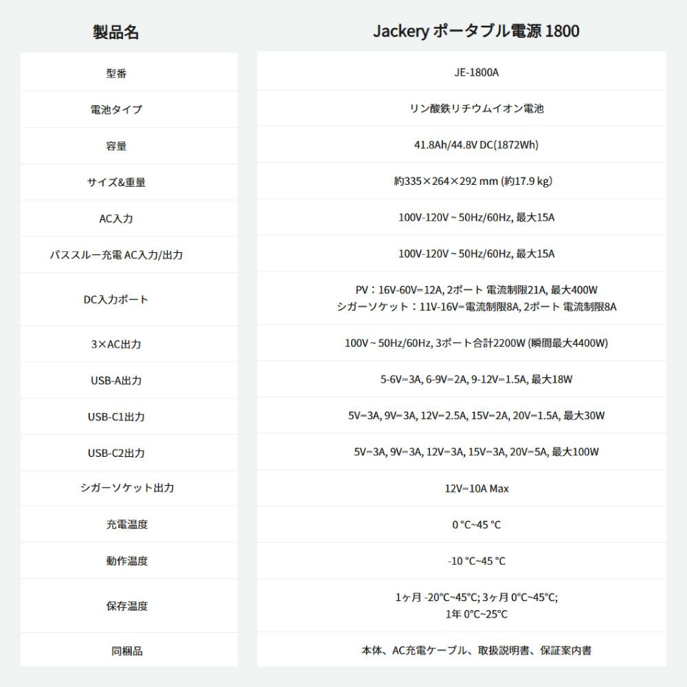 他の画像を見る 「安心の3年間保証」1872Whの大容量だから大人数のオフィスも安心 10年間毎日使える長寿命 停電時も安心のUPS&パススルー機能 ポータブル電源 1800 ポタ電 ポータブルバッテリー 1872Wh 蓄電池 長寿命バッテリー 防災グッズ 非常用電源 アウトドア JE-1800A Jackery 公式サイト販売価格 ¥ 135,745 税込 詳細を見る お気に入りに登録する