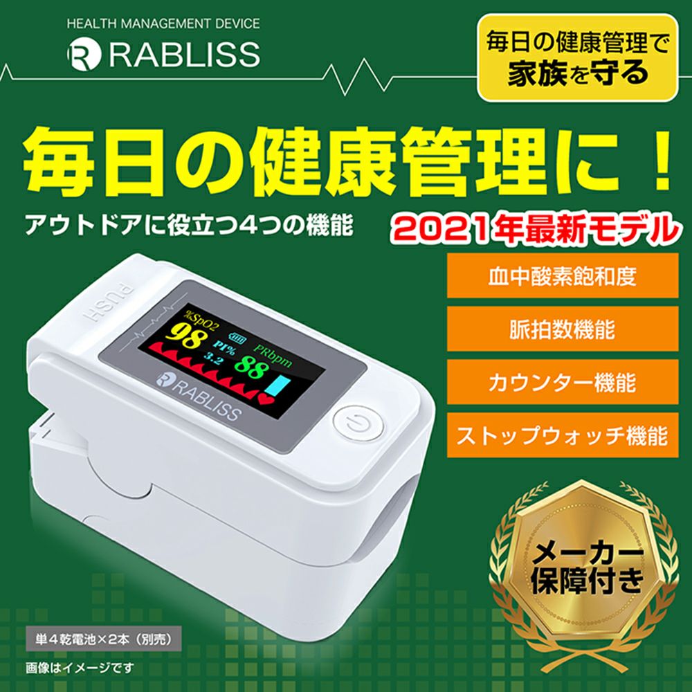 他の画像を見る 健康管理目的で血液中の酸素飽和度の管理もできるウェルネス機器 血中酸素濃度計 測定器[日本語説明書・保証書付] 公式サイト販売価格 ¥ 3,305 税込 詳細を見る お気に入りに登録する