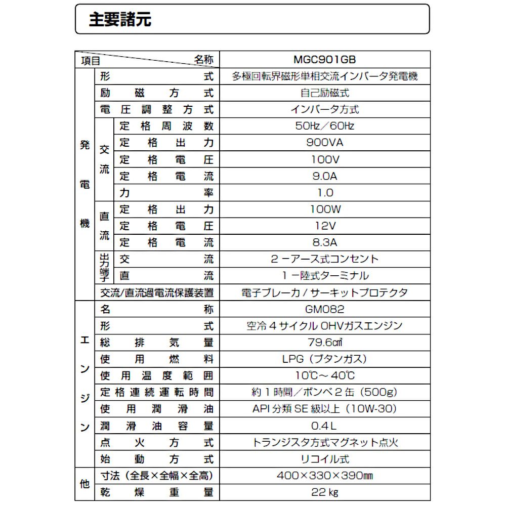 他の画像を見る ガス発電機だから非常時に 威力を発揮‼ インバーター制御で安定した 電力を供給します。 発電機 MGC901GB ポータブル発電機 非常用電源 公式サイト販売価格 ¥ 171,380 税込 詳細を見る お気に入りに登録する
