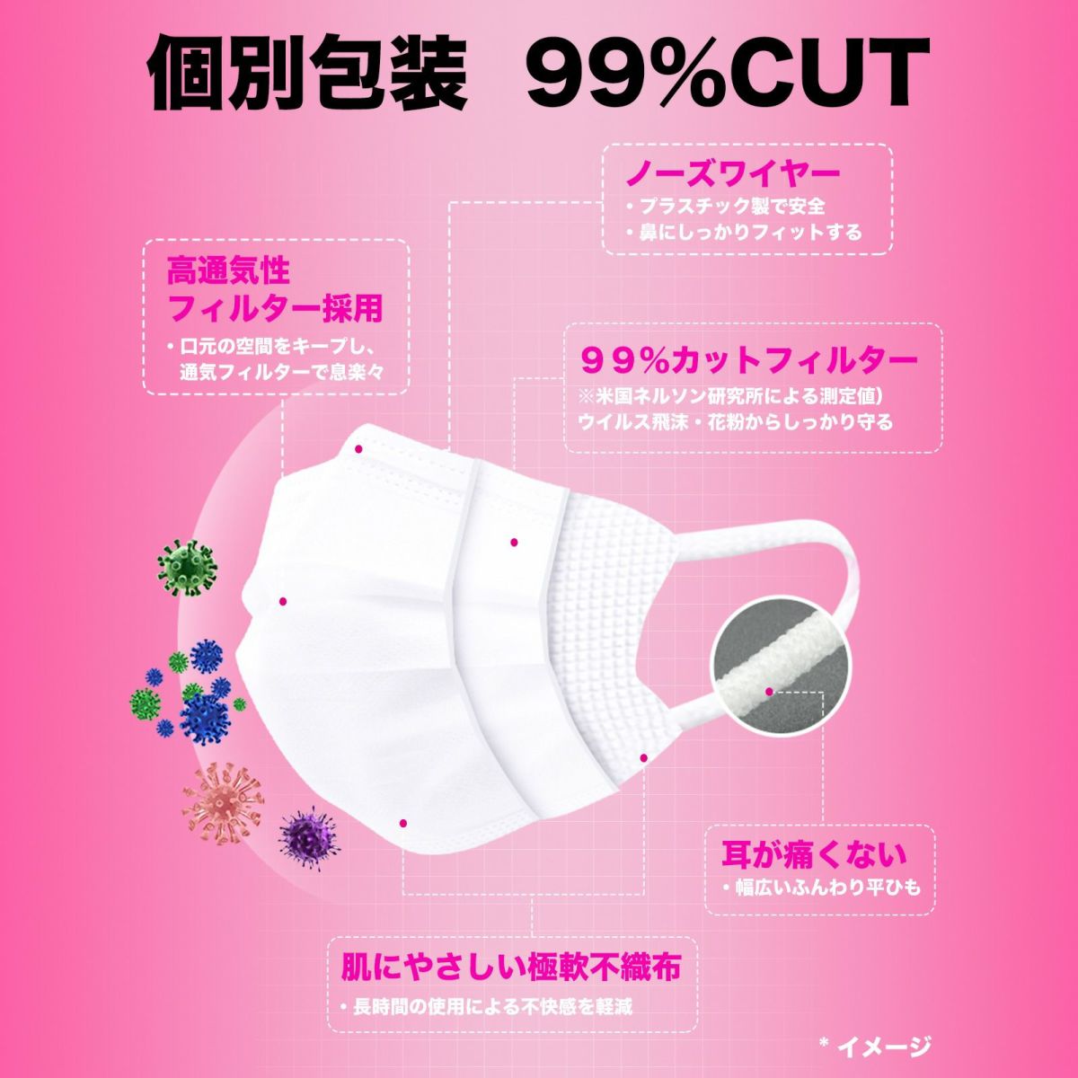 他の画像を見る 階段プリーツ 日本機構認証 BFE VFE PFE 99%cut CE・FDA RABLISS 個包装マスク 女性・子供用 50枚入 30箱セット 公式サイト販売価格 ¥ 13,200 税込 詳細を見る お気に入りに登録する